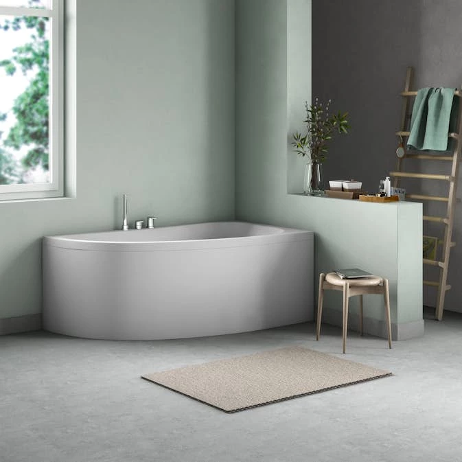 Badkaret är tillverkad i glasfiberförstärkt sanitetsakryl. Denna sanitetsakryl är 5 mm tjock och är homogent genomfärgad. Dessa speciellt utvalda material gör badkaret stabilt samt att det bibehåller vattnets värme. Då ytskikten är av genomfärgad sanitetsakryl kan det enkelt slipas/poleras vid behov.