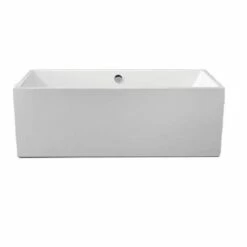 Ett fristående badkar med strikta former. De rena, raka linjerna och den symmetriska inredningen med avlopp och bräddavlopp placerade i mitten gör det möjligt att placera detta badkar i de flesta badrum. Båda ändarna kan användas som huvudändar. Badkarets kant är 8 cm bred och ger hela badkaret ett gediget utseende som påminner om antika stenkar. Badkaret är i färgad akryl. Mått: 178 x 80 x 60 cm.
