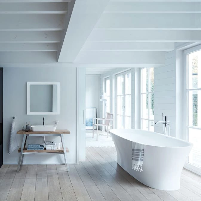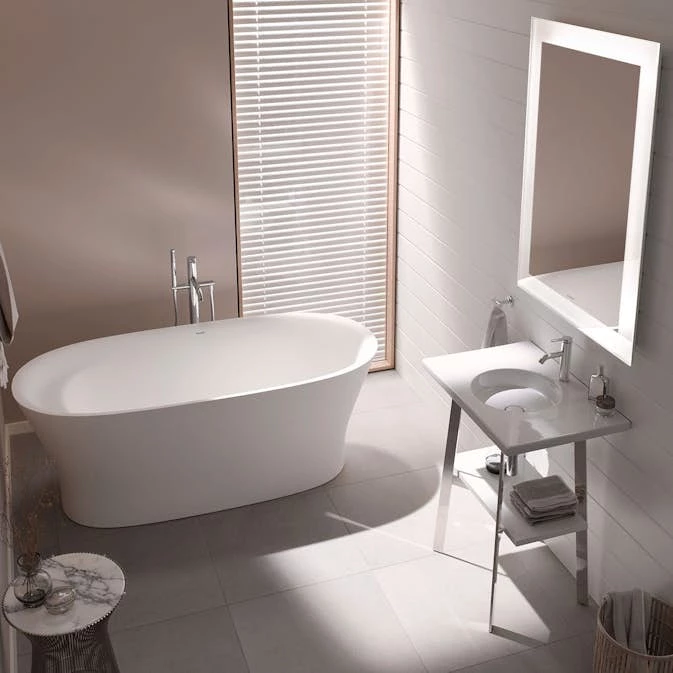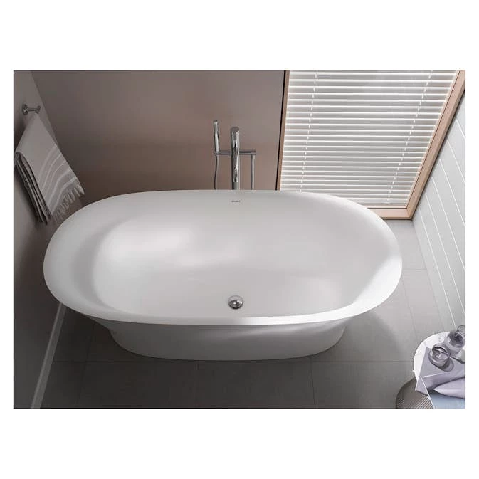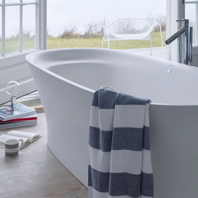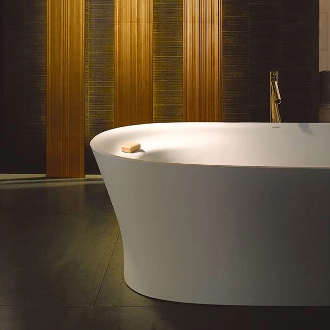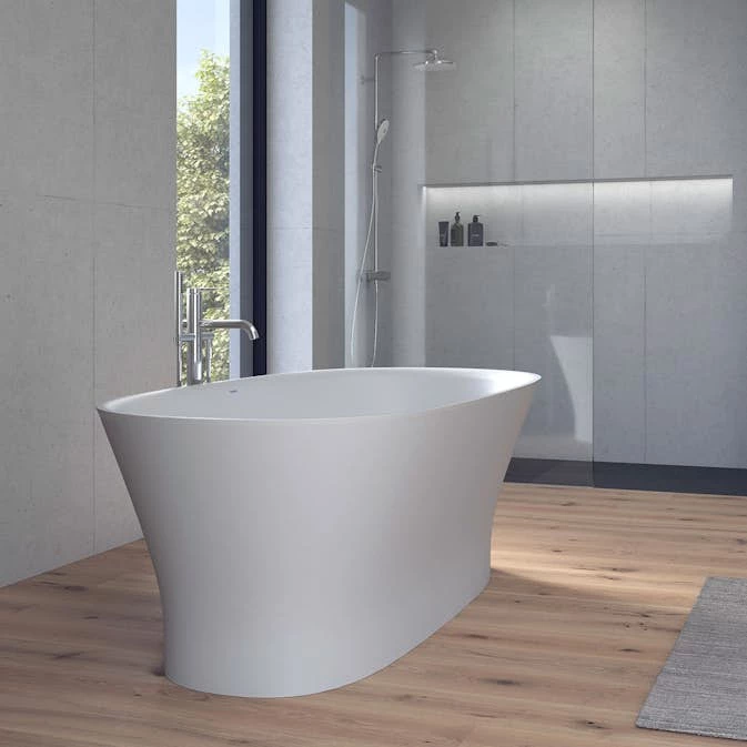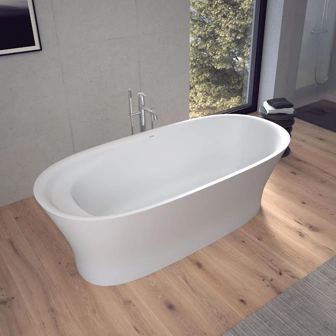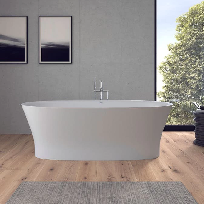 Badkaret är tillverkat av slitstark akryl med en matt ytfinish. Det levereras med benställning, avloppssats och bräddavlopp.