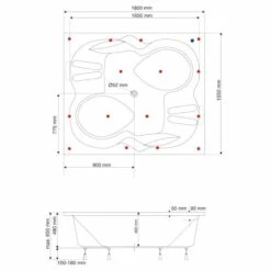 OBS! Måttuppgifter rörande höjd avser badkar utan benställning. Benställningen är ställbar 120-190 mm.
