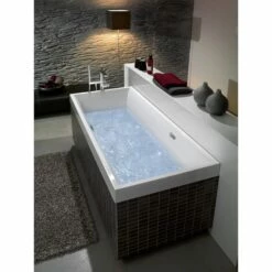 Töm badkaret på vatten efter varje bad. Rengör efter varje användning för att förhindra smuts- och kalkavlagringar. Använd ett milt och skonsamt rengöringsmedel, t.ex. handdiskmedel och en mjuk borste eller svamp. Skölj av med handduschen.