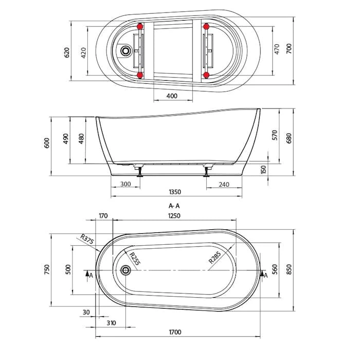 | Baddjup | 480 mm |