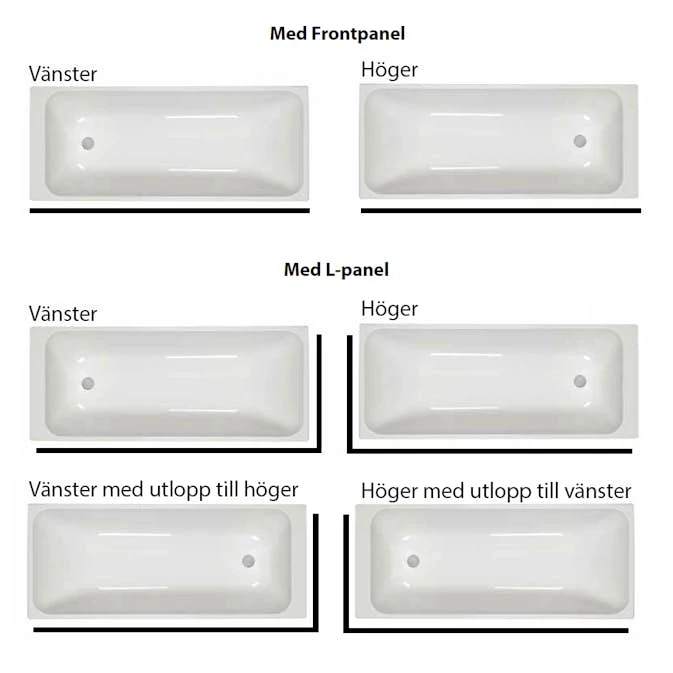 OBS! Badkaret levereras utan blandare och utan frontpanel.
