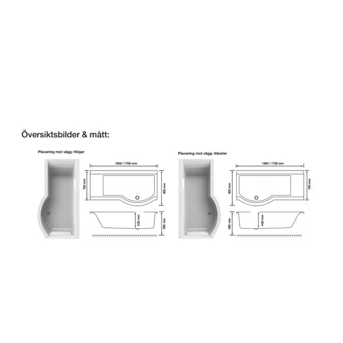 OBS! Badkaret levereras utan blandare och utan frontpanel.