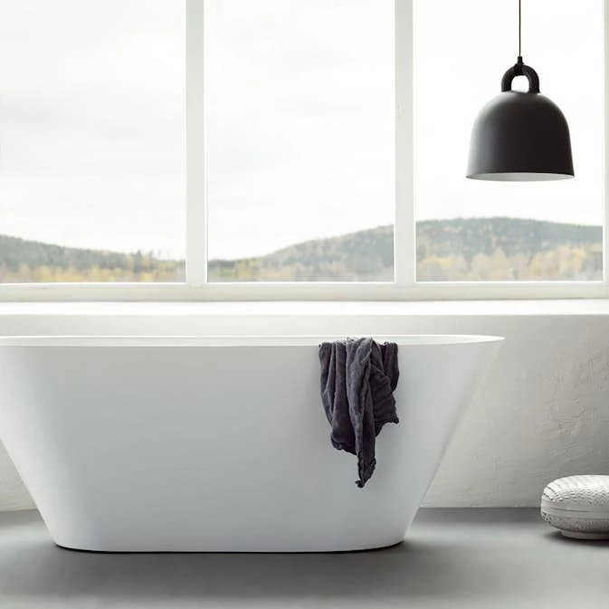 Badkar Svedbergs Oval 170 är ett bekvämt och elegant badkar med mjuka former som ger dig badupplevelser utöver det vanliga. Det är materialet gjutmarmor som möjliggör badkarens unika form och storlek. Design: Pelican Copenhagen.