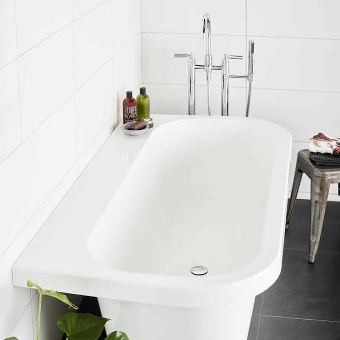 Badkaret levereras med avolpssats i krom och fötter som är justerbara (ca 25 mm) så att karet står plant på alla ytor. OBS! Kan variera beroende på golvets fall.