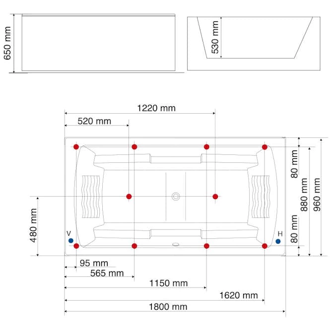 | Baddjup | 530 mm |