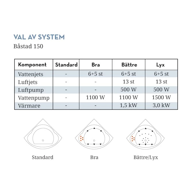 – Vattenmassage- reglerbar ryggmassageintensitet, sidomassage och ev. fotmassage