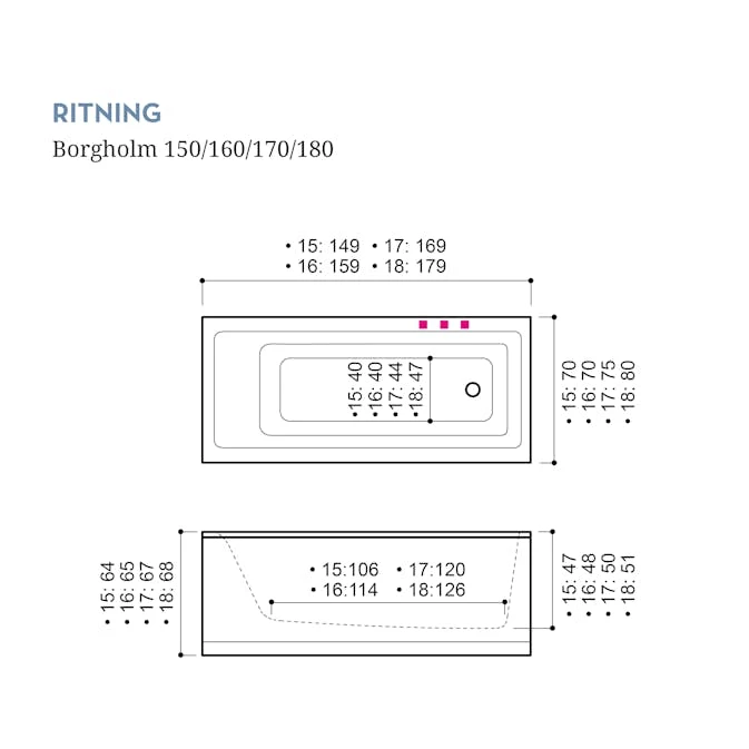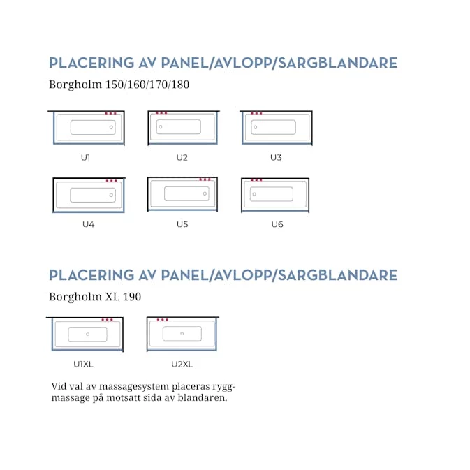 – 1 front och 1 gavel. Till hörnbadkar och runda badkar ingår endast 1 front