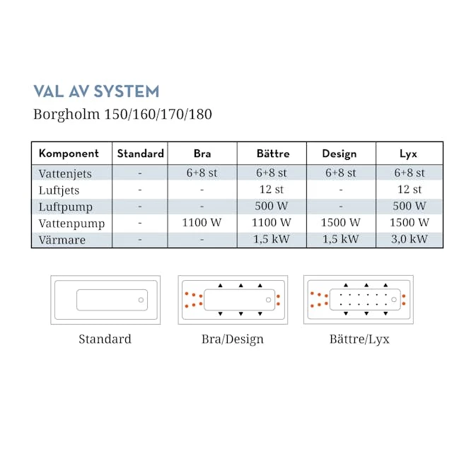 – Vattenmassage- reglerbar ryggmassageintensitet, sidomassage och ev. fotmassage
