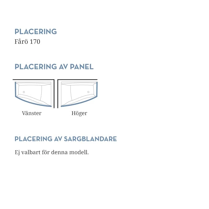 – 1 front och 1 gavel. Till hörnbadkar och runda badkar ingår endast 1 front