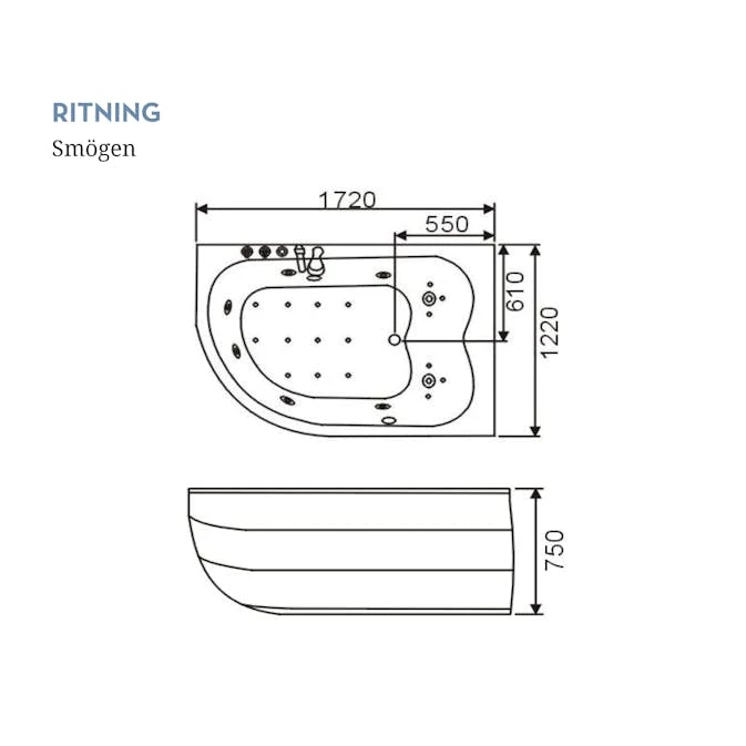 Smögens mjuka runda former och bra baddjup gör detta till ett bubbelbadkar att njuta i. Swebad Smögen är ett fullutrustat Deluxe-massagebadkar med mjuka former och bra bad¬djup. Smögen finns som höger eller vänsterställt