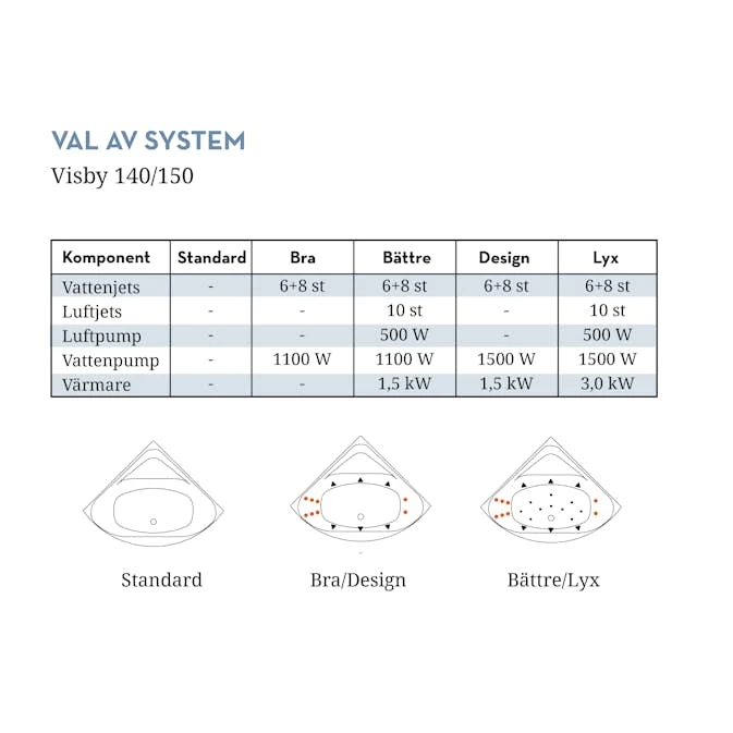 – Vattenmassage- reglerbar ryggmassageintensitet, sidomassage och ev. fotmassage
