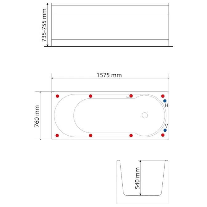 | Baddjup | 540 mm |