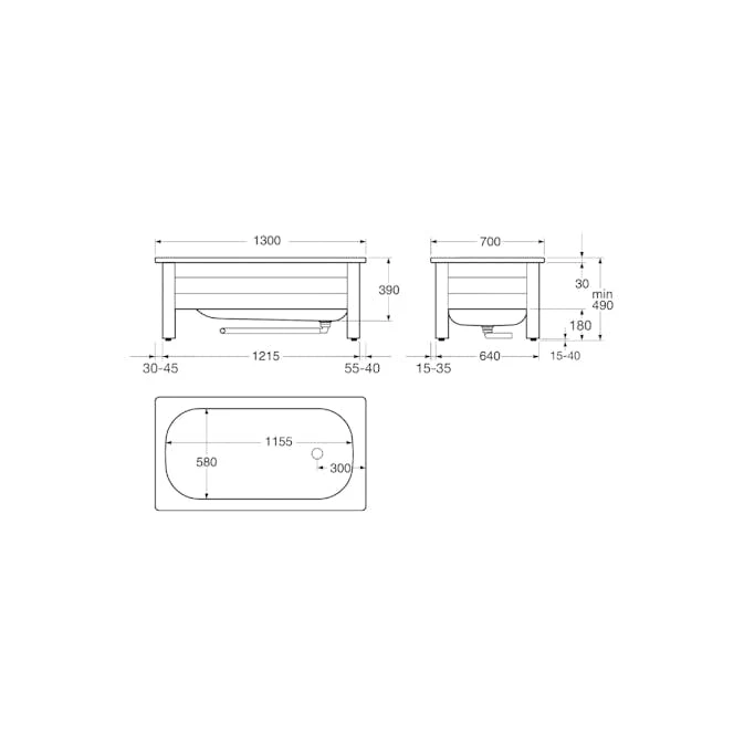 Halvfrontstativ Gustavsberg 6413 1300×700 mm är en badkarsfront i vit färg som levereras med en gavel och en front. Fötterna är ställbara 25 mm i höjd och det finns utrymme för rördragning.