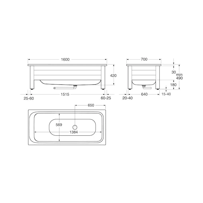 Halvfrontstativ Gustavsberg 6416 1600×700 mm är en badkarsfront i vit färg som levereras med en gavel och en front. Fötterna är ställbara 25 mm i höjd och det finns utrymme för rördragning.
