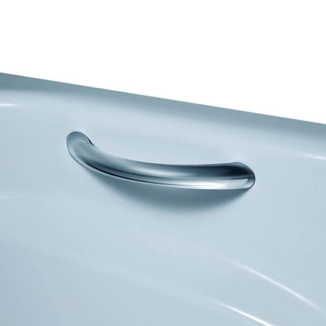 Stödhandtag från Gustavsberg i krom kan köpas till för inbyggnadsbadkaren för enklare i- och urstigning.