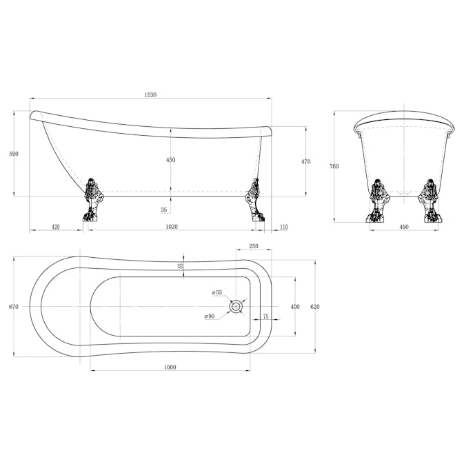Bottenventilen som ingår kommer i samma färg som tassarna, förutom med de vita tassarna som levereras med en kromad bottenventil.