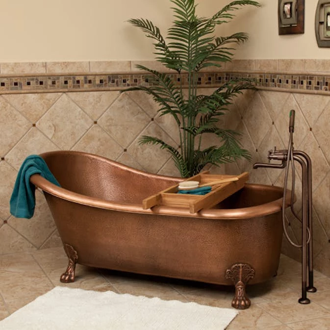 Badkaret är tillverkat av 99,9% ren koppar med ~ 1,6 mm tjock (16 gauge) kopparplåt. Den rena metallen gör att badkaret är 100 % återvinningsbart, hygieniskt och hållbart.