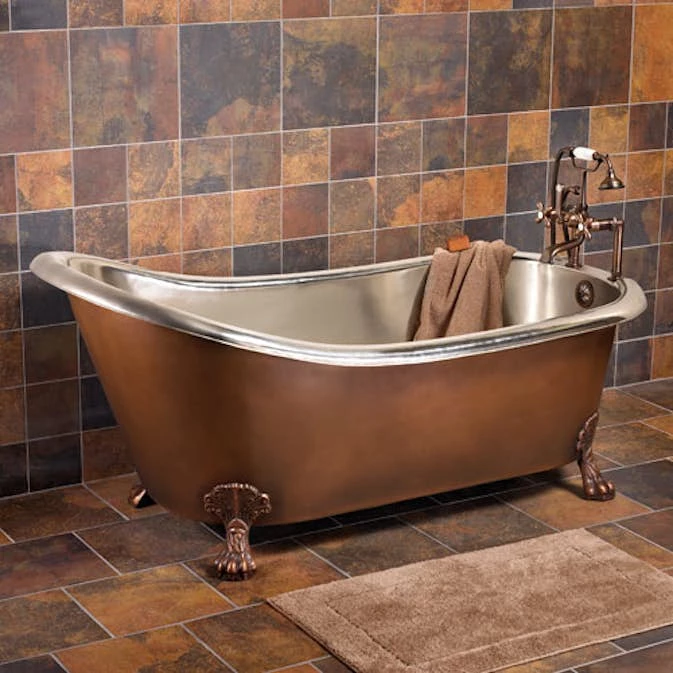 Tassbadkar 9275 från GemLook är ett fristående kopparbadkar i en exklusiv, klassisk design med en förnicklad, silverfärgad insida och en antikbehandlad yttersida. Tassbadkar GemLook 9275 har vackra tassar och en lite längre kortsida för att du ska kunna ta ett bekvämt och avslappnat bad. Små variationer i ytbehandling och mått (± 2 cm) kan förekomma.